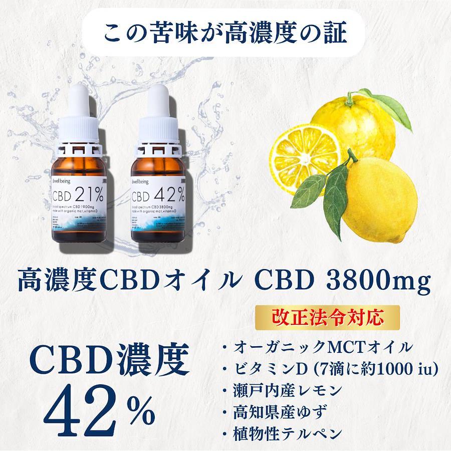High-Concentration CBD Oil (42%), 3800mg CBD, Organic MCT, Setouchi Lemon, Kochi Yuzu, Vitamin D, Unflavored, Made in Japan, 21% CBD (1900mg), 10ml, Higher Concentration than 20% and 40% CBD, Recommended for Sleep, Insomnia, and Well-Being