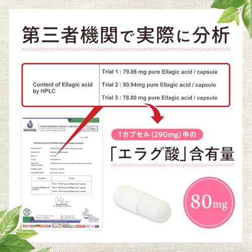?溢れるエラグ酸 コレファインは、エラグ酸がたっぷり摂取できる(1カプセルで80mg)サプリメントです。お客様にパフォーマンスで選ばれる製品にしたいという思いから、成分の含有量、原材料の選定、価格に拘りました。 ?1カプセル中の「エラグ酸含有量」を第三者機関で分析したところ、1カプセル(290mg)中に「80mg」の「エラグ酸」が含まれていることが分かりました。 ?原材料は、厳選した4種類の植物素材を使用しています。①「ザクロ抽出物(エラグ酸含有)」②「アフリカマンゴノキエキス(エラグ酸含有)」③「ブラックジンジャーエキス」④「生酵素(穀物発酵エキス)」 ?エラグ酸(Ellagic acid)はポリフェノールの一種です。ザクロやアフリカマンゴノキ(アフリカンマンゴー)、ラズベリー、クランベリーなどのベリー類、ナッツ類に多く含まれています。 エラグ酸は19世紀に発見されて以来、特に美容分野で注目されてきました。近年では健康面での働きが注目されています。 また、エラグ酸が代謝されてできる「ウロリチン」という成分の働きも注目されています。 ?溢れるエラグ酸 コレファインは、楽しい食事をサポートする植物抽出物100%サプリメントです。制限を頑張る方はもちろん、健康が気になる中高年の皆様にもおすすめです。 ?1日あたり1カプセルを目安に、水またはぬるま湯とともにお召し上がりください。