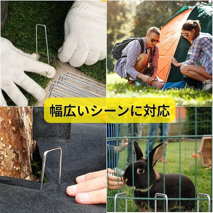 「用途が広い」 防草シート、農業用防虫ネット、人工芝、ビニールマルチ、不織布、ザバーン、各種シート・マットなどをしっかり地面に固定できる便利なU字ピンです。