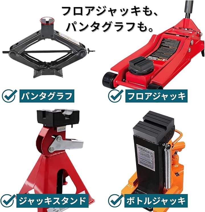 油圧式フロアジャッキやパンタグラフ式車載ジャッキにそのままかぶせるだけで使用可能です。