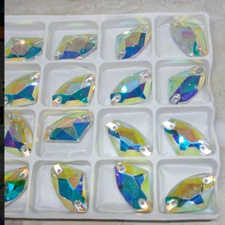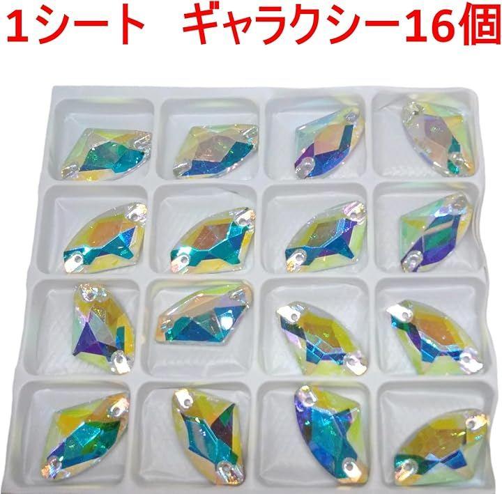 「素材」高品質クリスタルガラス(AB加工) 「仕様」縫い付け用両端穴2つ 「形状」ギャラクシー 「販売単位」各サイズ別トレー1つで販売(トレー内の個数はサイズ別)