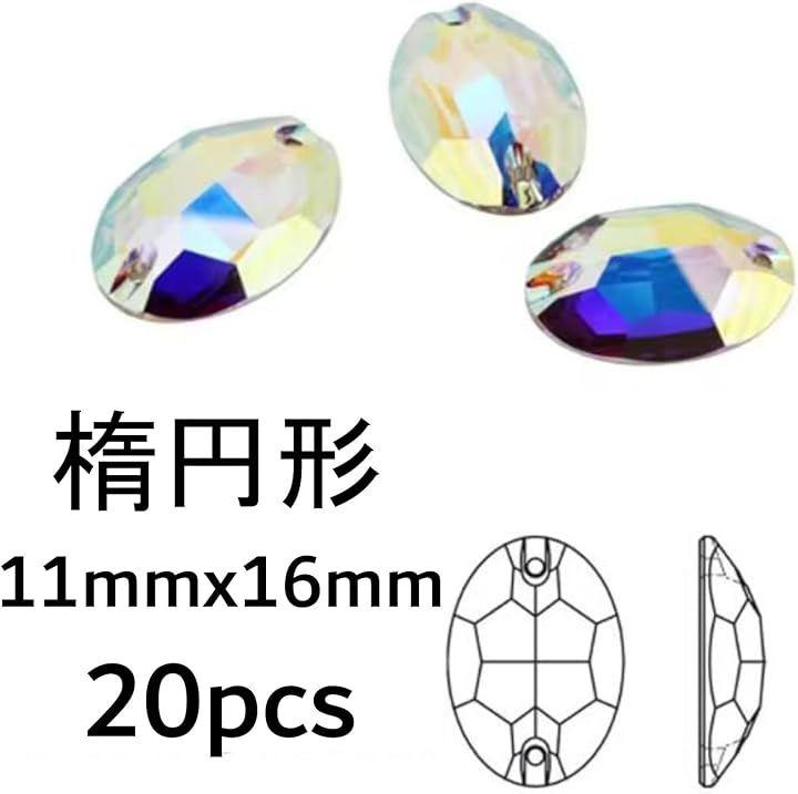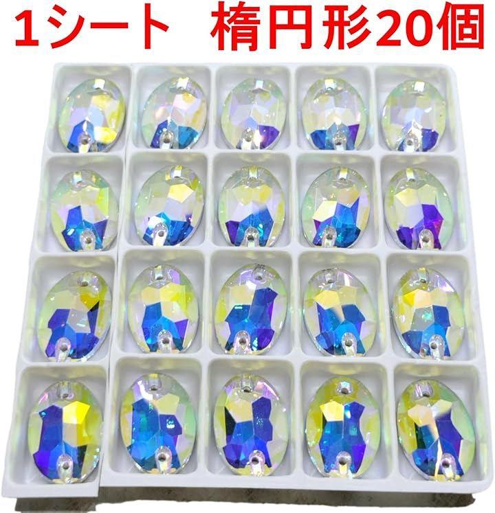 「素材」高品質クリスタルガラス(AB加工) 「仕様」縫い付け用両端穴2つ 「形状」楕円形 「販売単位」各サイズ別トレー1つで販売(トレー内の個数はサイズ別)