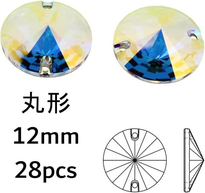 「素材」高品質クリスタルガラス(AB加工) 「仕様」縫い付け用両端穴2つ 「形状」丸形 「販売単位」各サイズ別トレー1つで販売(トレー内の個数はサイズ別)
