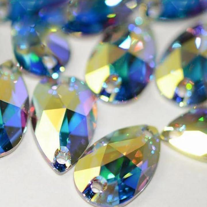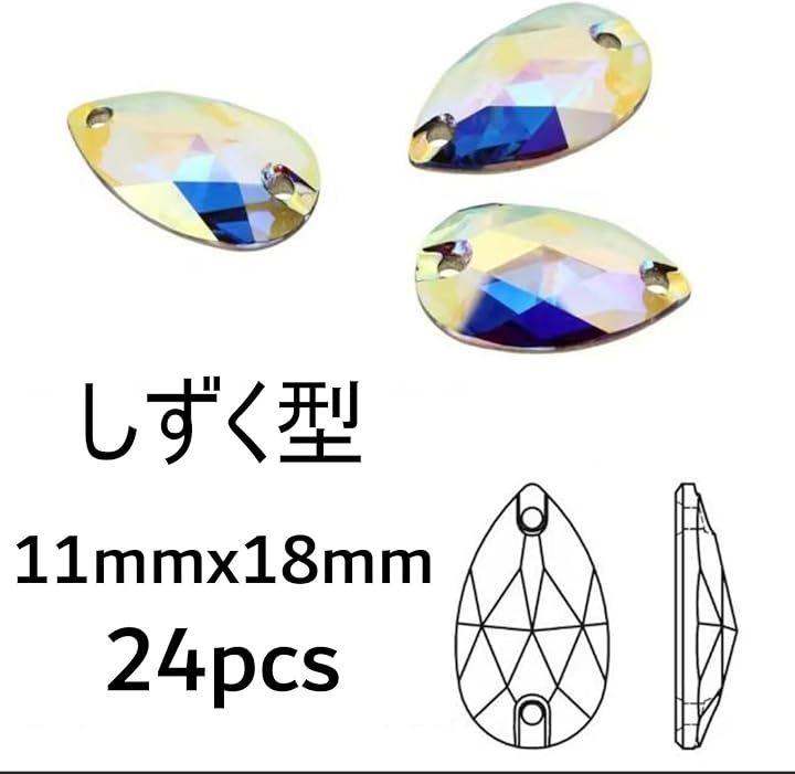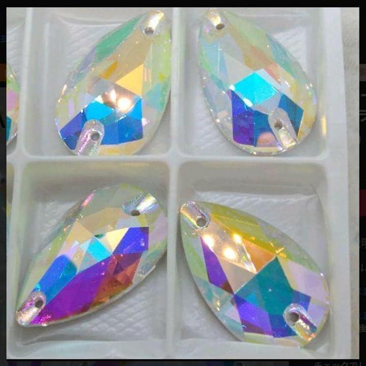 「素材」高品質クリスタルガラス(AB加工) 「仕様」縫い付け用両端穴2つ 「形状」雫型 「販売単位」各サイズ別トレー1つで販売(トレー内の個数はサイズ別)