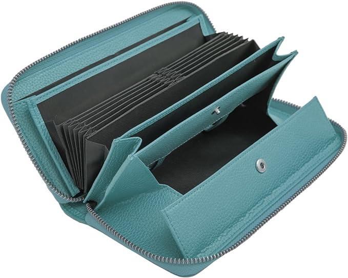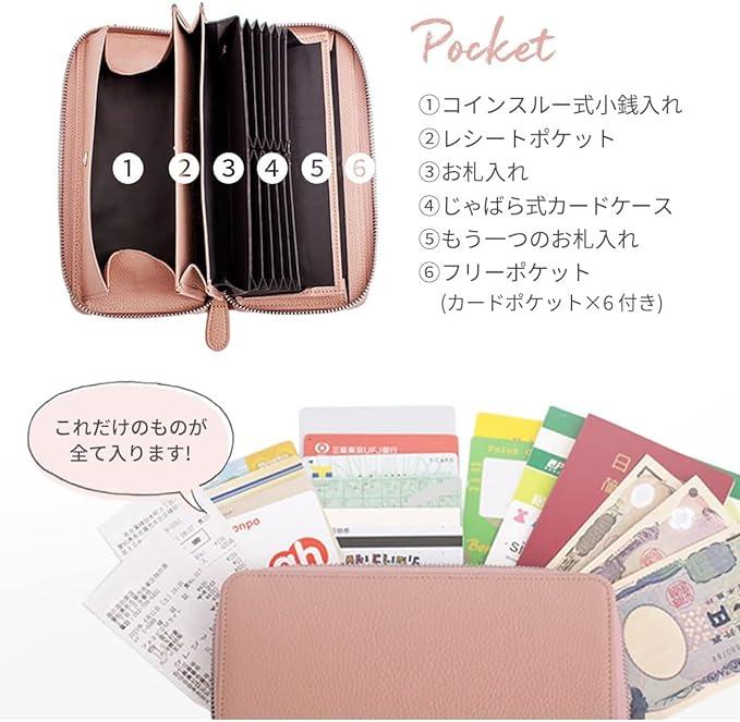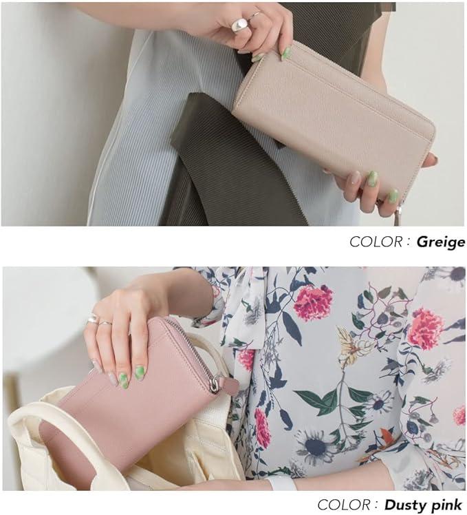 [HIGH FIVE] Women's Large Capacity Bellows Long Wallet, Genuine Leather, Garcon Design, Automatically Separates Receipts and Coins, Multi-Function Wallet with Coin Thru
