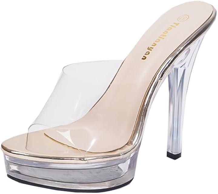 透明ストラップが素肌と一体化し、足とヒールの境界線を感じさせないため、視線が脚の縦ラインに集中。