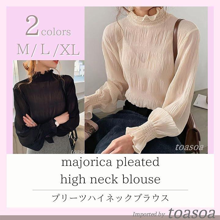 ふんわりシアー素材がトレンド感満載、さりげないフリルがかわわい清楚なハイネックプルオーバーブラウス。