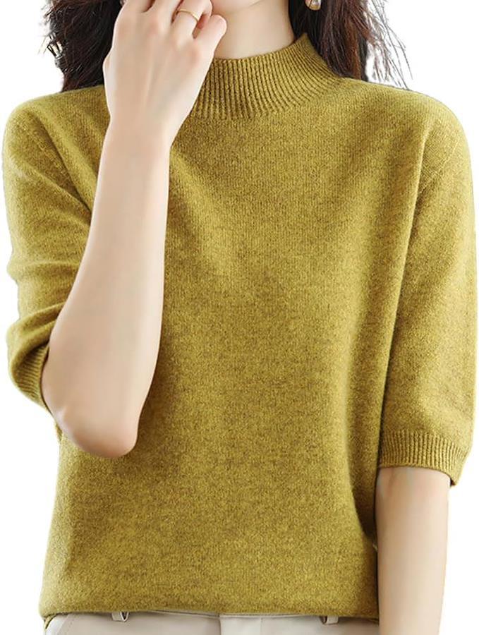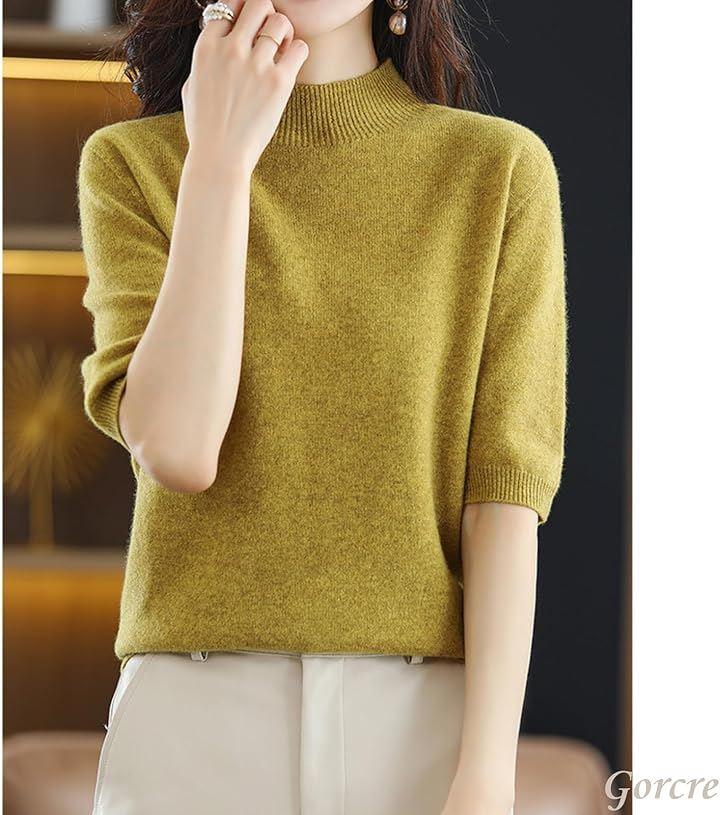「ずっと続く美シルエット」かゆくない・伸縮・あったかで、春・秋・冬はずっと上品美シルエットでおまかせ。ハイネックでリブニット半袖トップスのお届けです。