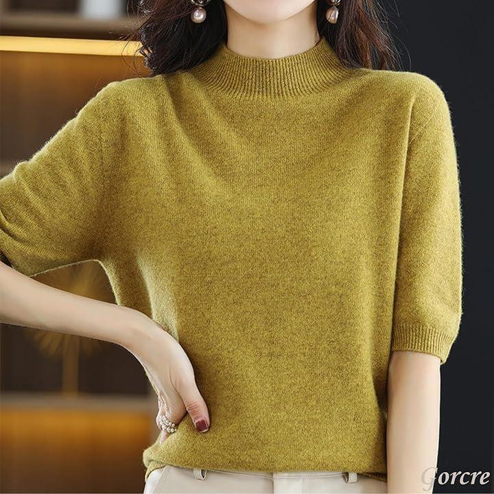 「ずっと続く美シルエット」かゆくない・伸縮・あったかで、春・秋・冬はずっと上品美シルエットでおまかせ♫ハイネックでリブニット半袖トップスのお届けです。