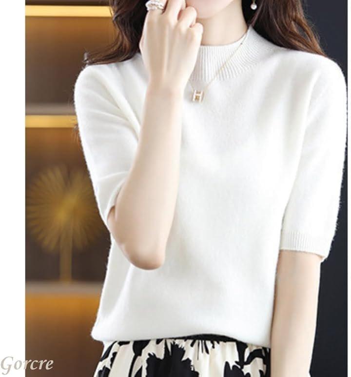 「ずっと続く美シルエット」かゆくない・伸縮・あったかで、春・秋・冬はずっと上品美シルエットでおまかせ。ハイネックでリブニット半袖トップスのお届けです。