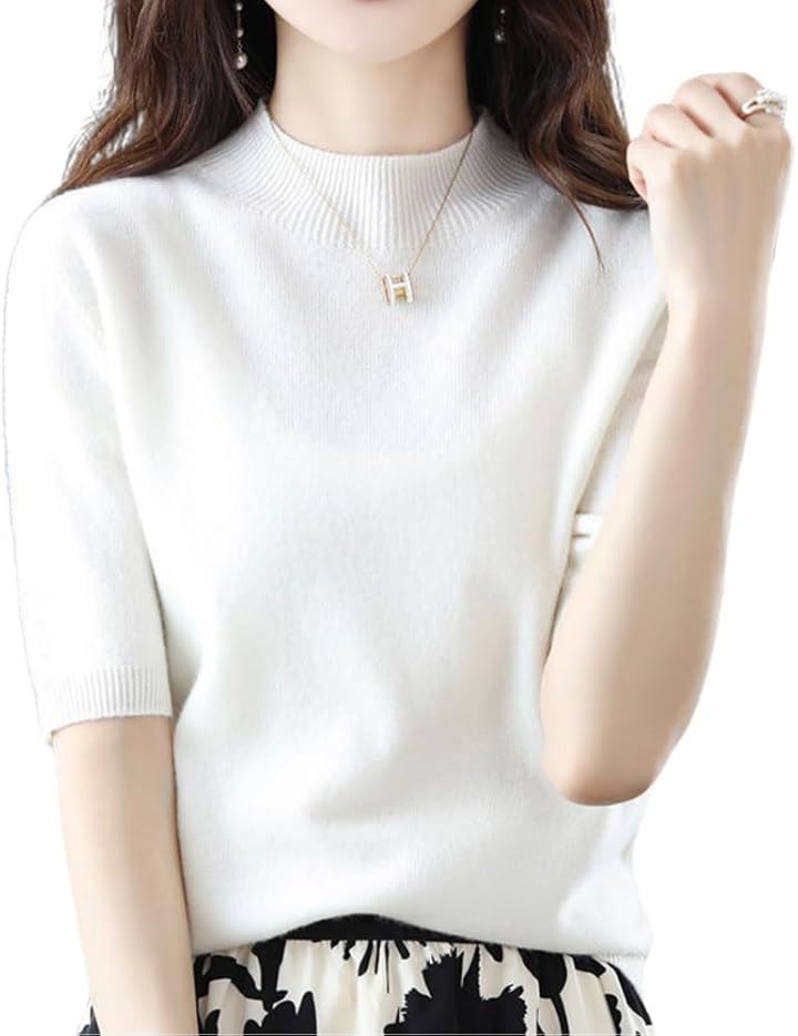 「ずっと続く美シルエット」かゆくない・伸縮・あったかで、春・秋・冬はずっと上品美シルエットでおまかせ。ハイネックでリブニット半袖トップスのお届けです。