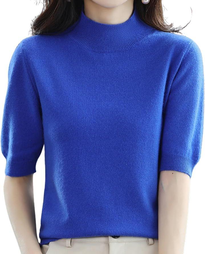 「ずっと続く美シルエット」かゆくない・伸縮・あったかで、春・秋・冬はずっと上品美シルエットでおまかせ。ハイネックでリブニット半袖トップスのお届けです。