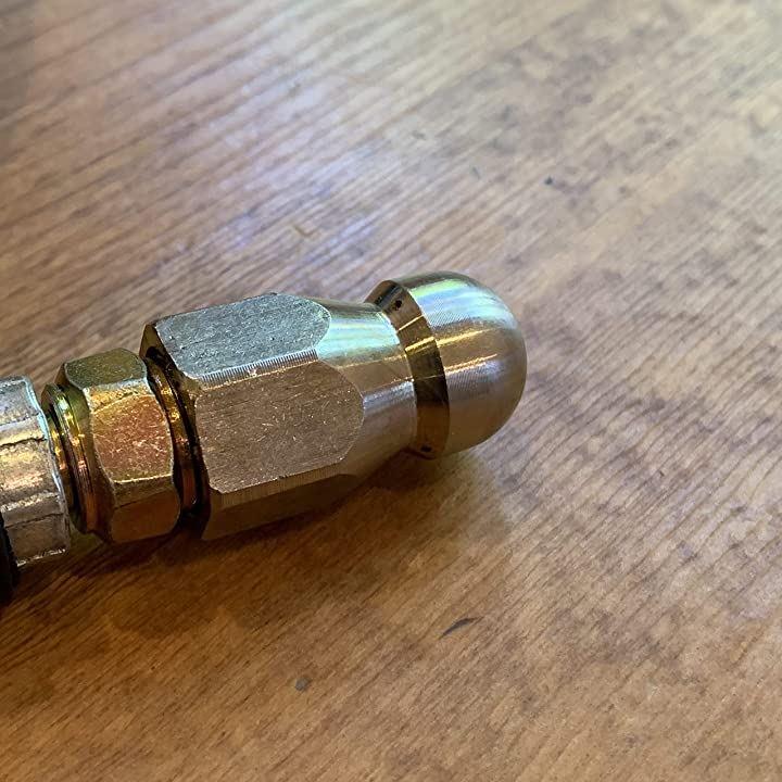*先端のノズル前方1箇所、後方3箇所から高圧水が逆噴射し、配管に沿って進み詰まりを解消します。