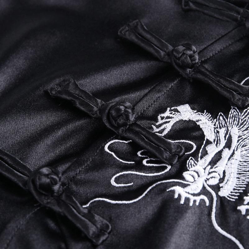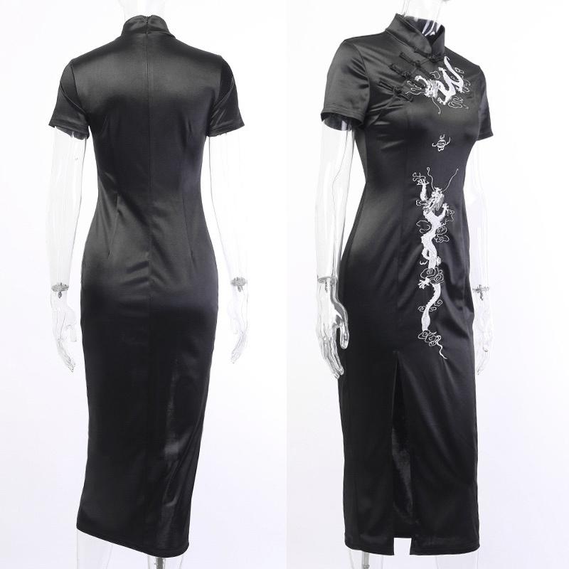 ししゅうの龍柄デザインが特徴的、脚魅せのハイスリットがセクシー◎