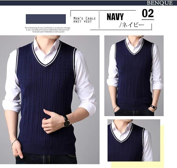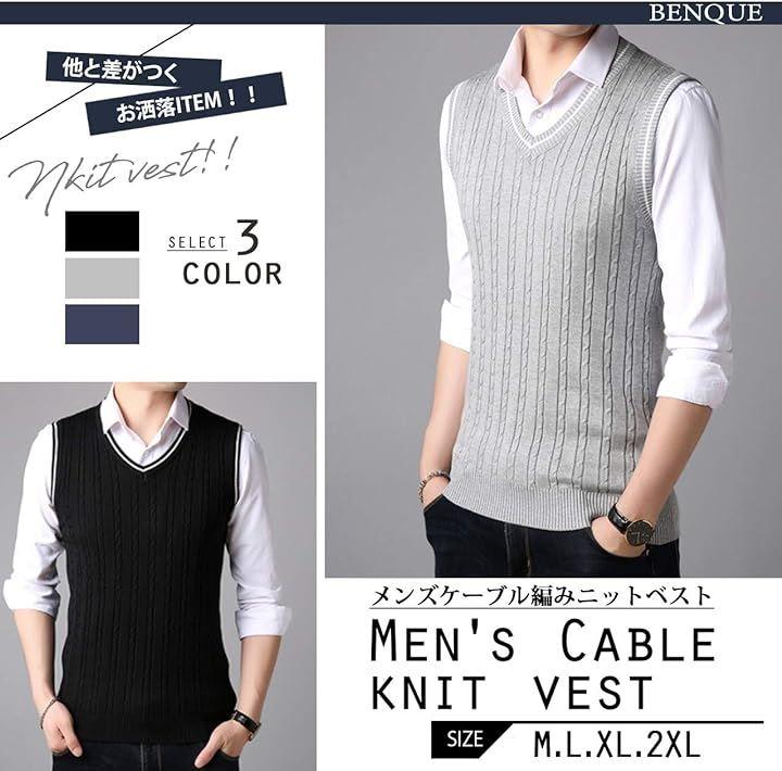 ビジネスにもカジュアルにも使いまわせる使い勝手の良いケーブル編みニットベストです。