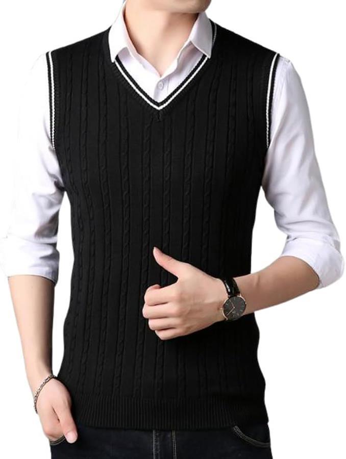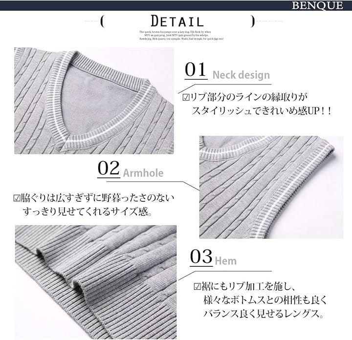 ビジネスにもカジュアルにも使いまわせる使い勝手の良いケーブル編みニットベストです。