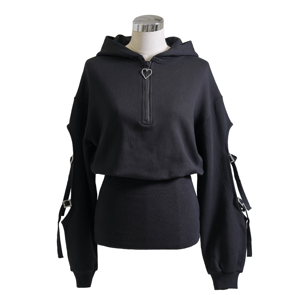 袖にはキラキラベルトバックルのついたスポーティさも入ったデザインで肌魅せセクシー。