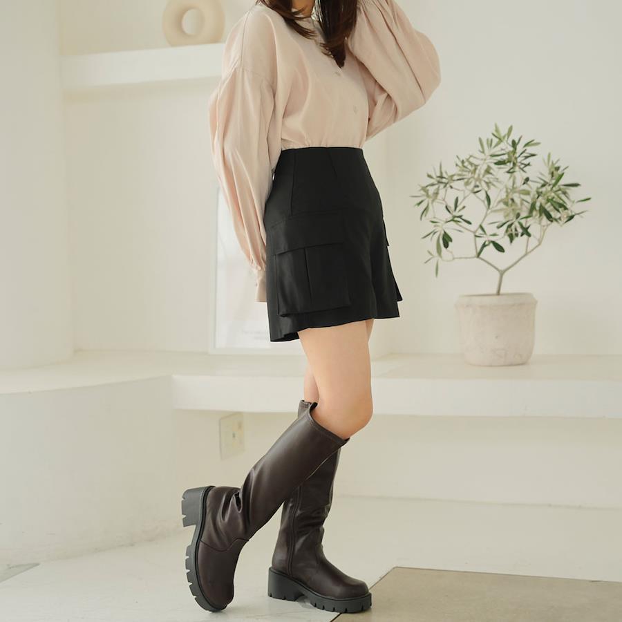 【コーディネート】トップスをウエストインすると腰回りがスッキリし、スタイルアップ効果があります。オーバーサイズなトップスの場合はあえてインせず、裾からちらっと見えても可愛いアイテムです。トレンドのブーツとも相性の良い丈感です。《透け感》なし 《生地の厚さ》普通 《裏地》あり 《伸縮性》なし《生産国》中国