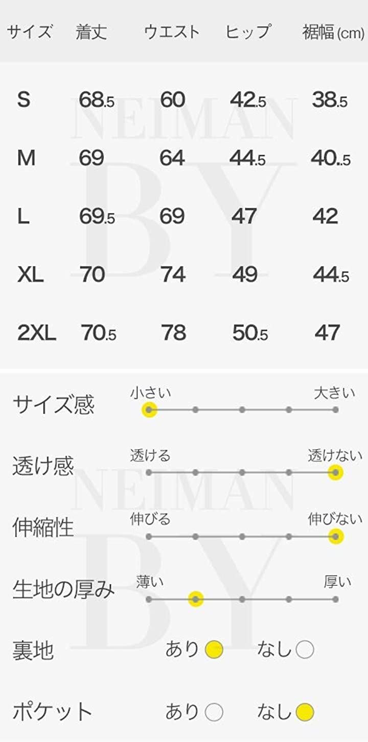 ・サイズ:着丈/ウエスト/ヒップ/裾幅(cm)「S」68.5/60/42.5/38.5「M」69/64/44.5/40.5「L」69.5/69/47/42「XL」70/74/49/44.5「XXL」70.5/78/50.5/47