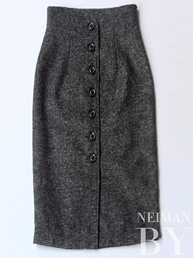 程よい厚みで寒い冬でも防寒とお洒落の両方を手に入れることが出来ます・ しっかりとした生地感のハイウエストスカートで上級感に溢れ、とてもエレガントな印象に... フロント部分に付いた1列のボタンは全て開閉可能で着脱簡単...ボタンの付替えで微調整も可能です・ 程良くボディに沿うペンシルシルエットに加え、存在感のある黒のボタンの縦ラインが目を引き、スッキリ着痩せして見えます。