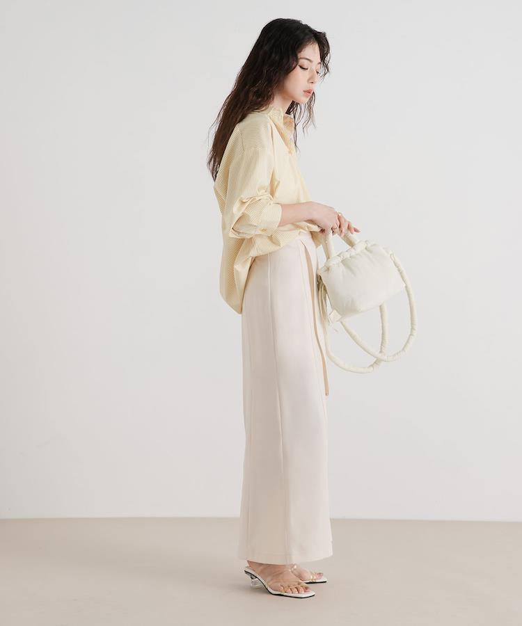 シンプルながらラップ風デザインがアクセントになってくれるのでどんなトップスとも合わせやすい1着です!
