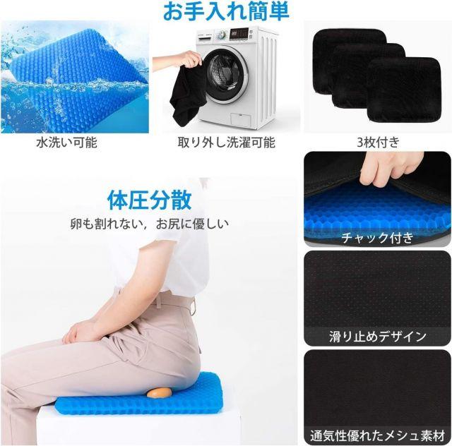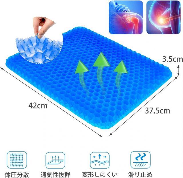★【通気性抜群&優れた柔軟性】日本のメッシュ弾性ソフトキャンディーゲル技術を採用し、ミツバチの巣のような構造で空気を順調に循環させ、独特な二重構造で柔軟性と弾力性を兼ね備え、従来品より良い柔軟性と優れた弾力性と放熱性を実現します。更に、優れた弾力性・復元力の高品質ゲルを採用しており、卵を置いて座っても割れない驚きのクッション性・高弾性!通気性が抜群、四季を問わず、いつでも快適にご使用できます。