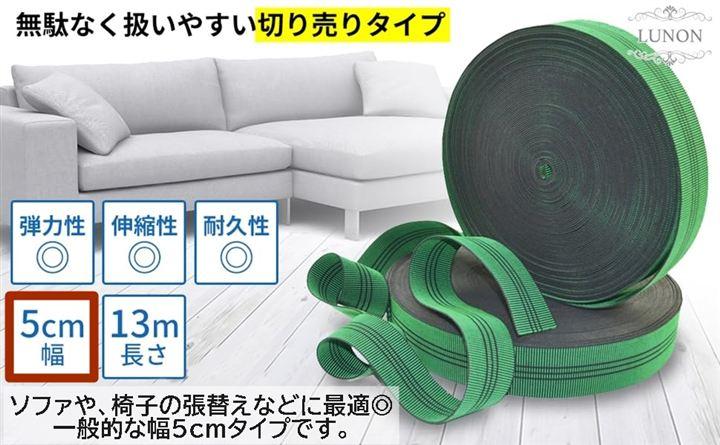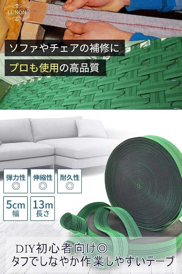 補修 テープ 家具 修理 用 ウェビングテープ グリーン 5cmx13M ウェビング ベルト エラスベルト ソファ 座面 張り替え家具 修理 用 ウェビングテープ グリーン 5cmx13M 。
