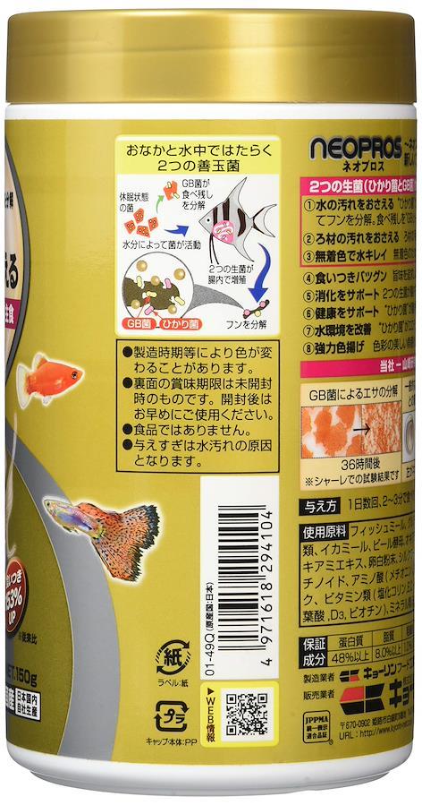 ひかり菌とGB菌がフンや残餌を分解。コケや汚れをおさえ、また消化吸収しやすく熱帯魚の健康をサポート。
