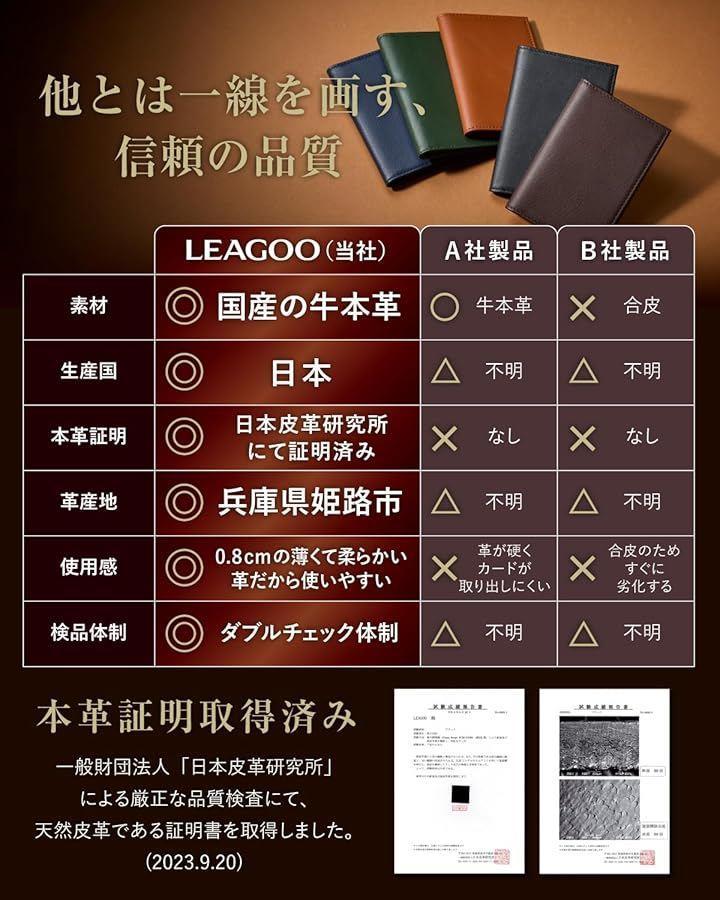 「商品詳細」*仕様:カードポケットx10 *サイズ:約11cmx約7.5cmx約0.8cm *カラーバリエーション:ダークブラウン、ブラック、グリーン、キャメル、ネイビー *用途:カードケース、カード入れ、カードホルダー、クレジットカードケース、札入れ、ミニ財布 *ブランド名:LEAGOO