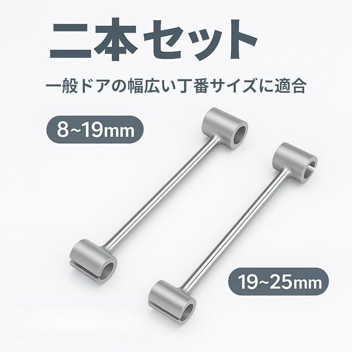 「商品内容」パッケージ内容:丁番起こし2本セット 本体サイズ:(1)全長25cm、適合サイズ:8-19 mm (2)全長26.5cm、適合サイズ:19mm-25mm 材質:スチール *サイズ詳細は商品画像をご確認ください