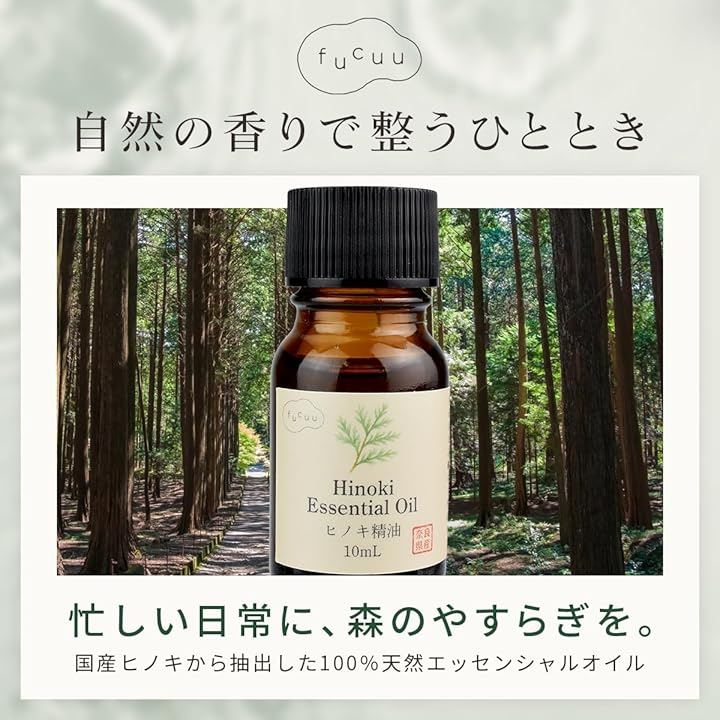 「日常で森林浴を楽しみたい方に」奈良県産のヒノキから抽出した100%天然エッセンシャルオイルです。