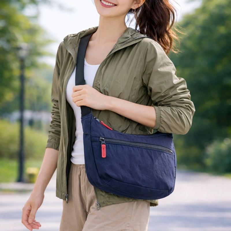 また、ナイロン特有の耐摩耗性・撥水性にも優れており、急な雨やアクティブなシーンでも安心して使える実用性の高さが魅力です。
