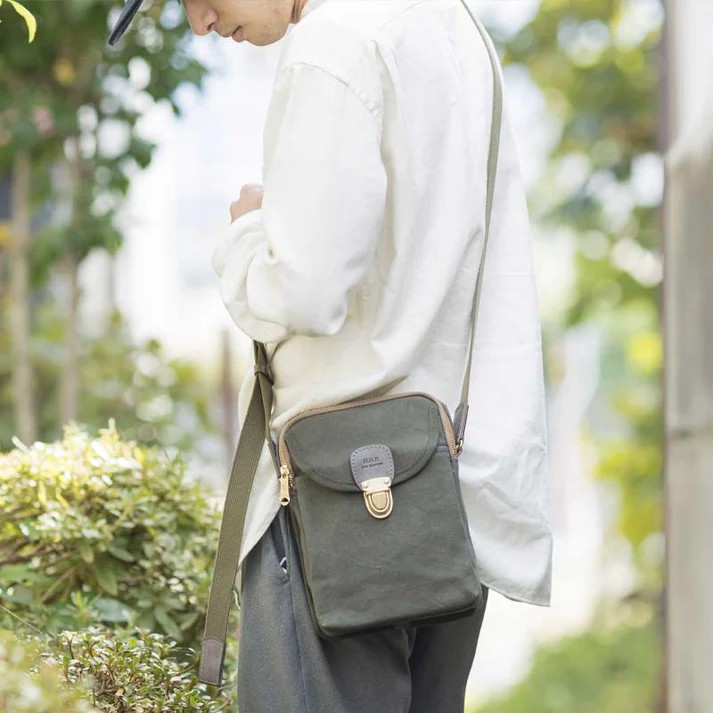 MADE IN JAPAN 、天然皮革にこだわったレザーブランド「kissora」とのコラボアイテム。A5サイズのポシェット。お財布、スマホ、それと文庫など、それほど多くのものを持ち歩かない、スマートな使い方が得意なポシェット。いつもかたわらに置いて使っていただきたい、そんなバッグです。