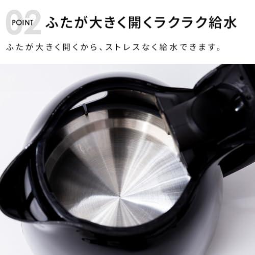飲む時だけ、必要な時だけ沸かすエコスタイルの電気ポットです。最大容量は1000mlでたっぷりお水を沸かす事ができます。300mlからでも沸かす事ができるので、一人前のカップラーメンや5人分のコーヒーまで使用可能。お湯が切れると自動的に電源が切れるので、ふきこぼしもありません。おしゃれなシンプルデザインです。 飲む時だけ、必要な時だけ沸かすエコスタイルの電気ポットです。 最大容量は1000mlでたっぷりお水を沸かす事ができます。 300mlからでも沸かす事ができるので、一人前のカップラーメンや5人分のコーヒーまで幅広くお使いいただけます。 【安心安全機能】①自動電源OFF:沸騰すると自動で電源が切れる機能です。②空焚き防止機能:本体が空の場合、動作しない機能なので、安全です。 中身が見える窓付きで、加熱中はランプが赤くなるわかりやすいケトルです。【商品詳細】商品サイズ(cm):幅約20.5×奥行約15.0×高さ約17.0、梱包サイズ:16.6 x 17.0 x 19.0 cm