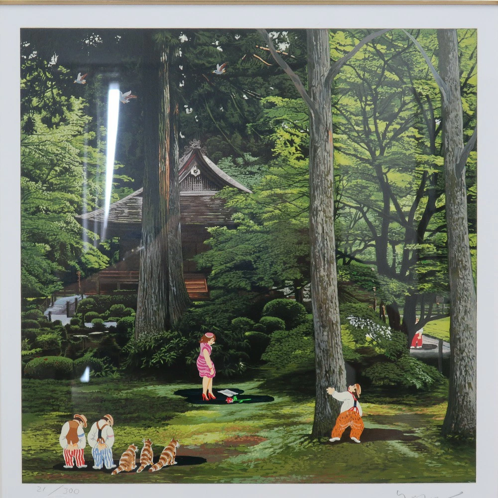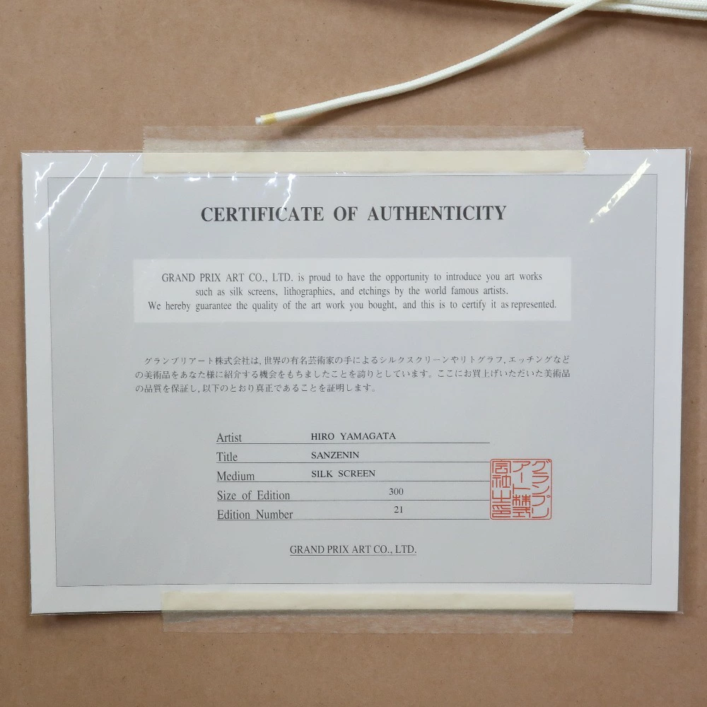 | 商品説明 | ・作家:ヒロヤマガタ(山形博導) ・題名:「三千院」 ・技法:シルクスクリーン ・エディション:21/300 ・額縁の外寸法:約 60×62cm |