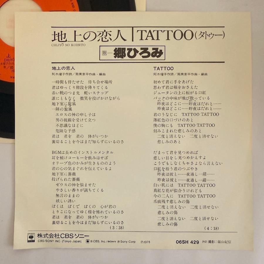 Hiromi Go Showa Era Vintage EP Record "Lovers on Earth" TATTOO 7-inch Extended Play
