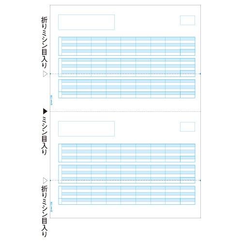 レーザープリンタ用帳票。A4サイズ2分割((給与明細書)/(給与明細書))。項目名ブランク。折りミシン付き。専用封筒MT31T。1箱2000枚入り。ミシン目切り離し後のサイズ;148.5x210mm。紙厚:0.08mm坪量;64g/㎡。