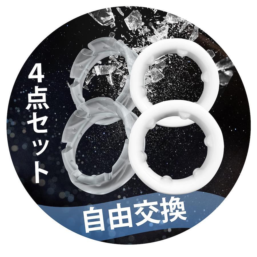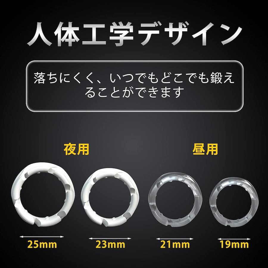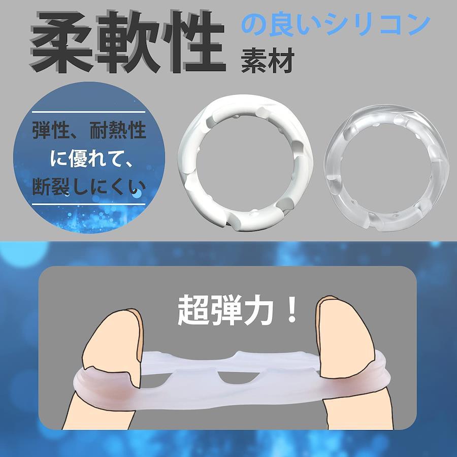 ?【独自開発】:自分のデザイン、独自の核心技術を集中させ。 初心者でも経験者でもに適しています。あなたとパートナーのために楽しみを豊かにします。 ?【昼用&夜用4点セット】:乳白色のは日常版です。昼?用リングは伸びを押えて締め付け、強度を増強した新素材を採用して、昼間に装着します。透明色の夜用版です。就寝用リングは驚異的な伸びと強さ、柔らかな皮膚感触と吸着力、就寝時に装着します。 ?【脱落防止設計・抜群の装着感】: ヘッドはクラウンのようなデザインで、激しくストロークしてもズレ落ちる心配がないのは大きなメリットです。フリーで簡単装着で付け心地は非常に良いで、圧迫感も適度で、ズレもありません。見た目よりも装着が容易で、装着後はグリップもしっかりしています。 ?【超弾力シリコーン製&防水加工】:しなやかで柔軟性に優れたシリコーン製で、安全安心、環境に優しい無臭無毒。手触りは柔らかくて、しっかりとした感触も確かにあり、気持ち良さが十分に感じられます。また、お手入れに関しては、防水仕様なので、水で簡単にきれいに洗い落とせる、防水加工をきちんとしてあるので、バスタブや浴室だけでなく、プールなどでも幅広くご利用頂けます。 ?【厳密梱包&品質保証】: 弊店は常にお客様のプライバシーを最優先しています。中身の見えないように厳重に梱包、アダルトとはわからない発送元で送りします。商品が到着次第、何か不具合がございましたら、是非弊店にてご連絡をお願い申し上げます。
