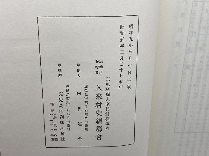 商品名:入来村史 入来村史編纂会(鹿児島県)