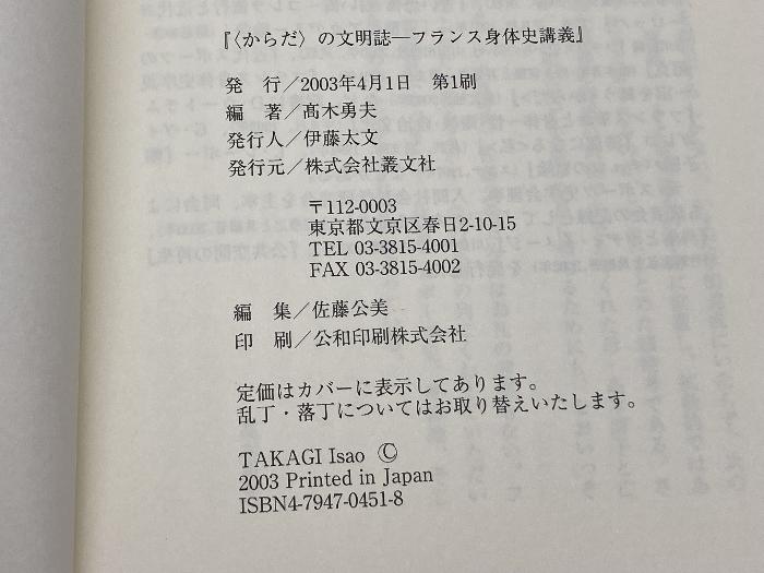 商品名:からだの文明誌: フランス身体史講義 叢文社 高木 勇夫