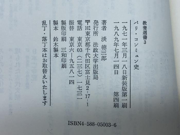 商品名:パリ・コンミュン史 (教養選書 3) 法政大学出版局 淡 徳三郎