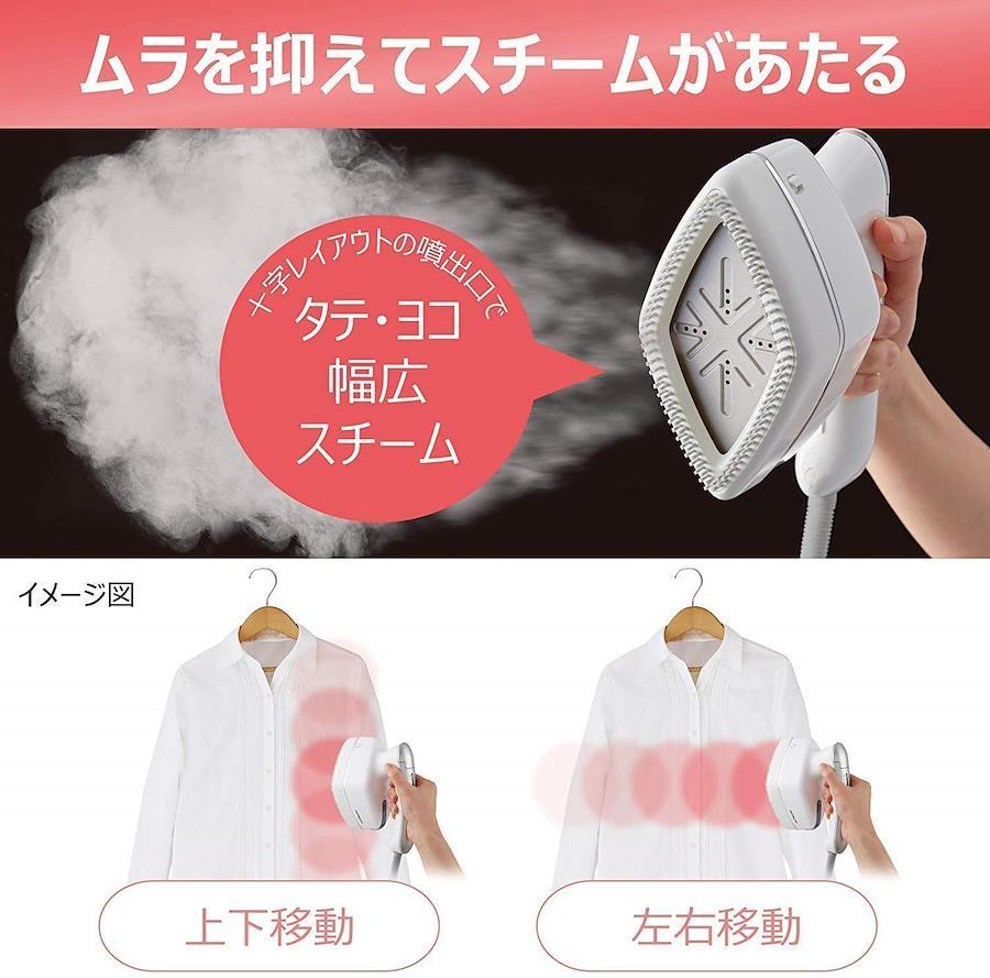 ●たっぷりスチームでシワとニオイを快速お手入れ。(約14g/1分)従来品に比べ、スチーム量を約27%アップさせました。1度スチームボタンを押すだけで、1分間連続でスチームが出ます。ボタンを押し続けなくて済むのでお手入れラクラクです。