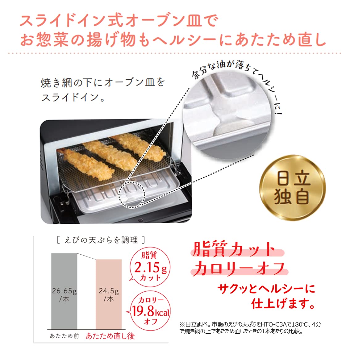 無段階温度調節(80~230℃)遠赤外線ヒーター(上1本)搭載スライドイン式オーブン皿(特許取得)採用置きやすく、取り出しやすい着脱式メッシュ焼き網丸洗いできる引き出し式パンくずトレイ