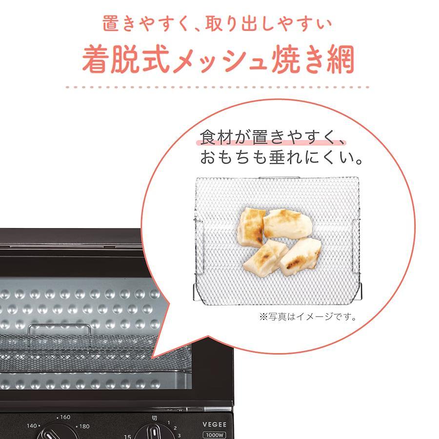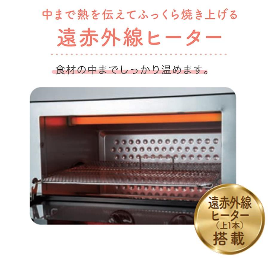 無段階温度調節(80~230℃)遠赤外線ヒーター(上1本)搭載スライドイン式オーブン皿(特許取得)採用置きやすく、取り出しやすい着脱式メッシュ焼き網丸洗いできる引き出し式パンくずトレイ