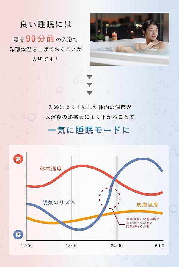 「ポカポカ入浴を促す重炭酸*配合」 お湯に溶ける「重炭酸」はお湯に溶けて重炭酸イオンに変化。 これにより、空気中に分散せず、長時間の効果を実感いただけます。