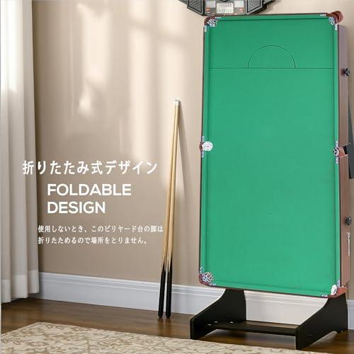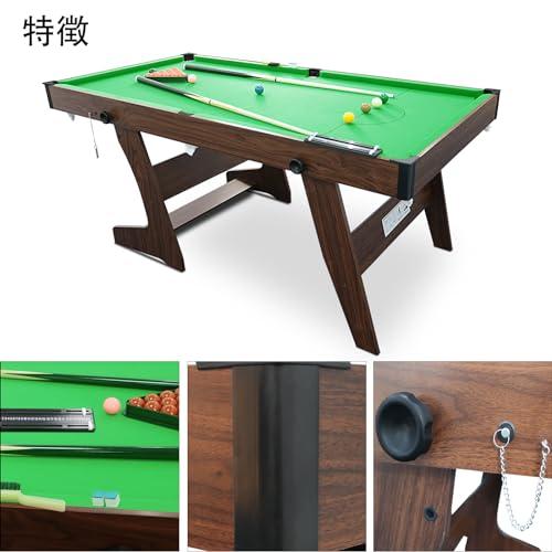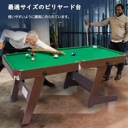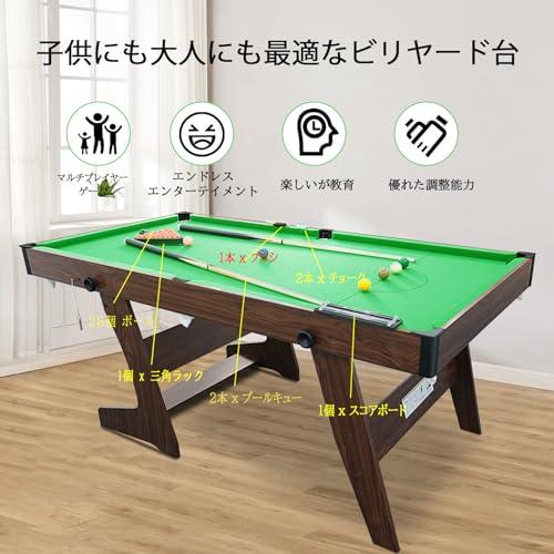 ??材質: 合成木材+鉄+プラスチック。本体サイズ:約L183×W91.5×H79(cm)。折りたたみ式で、どこでも収納は可能です、スペース利用を更に活用的に。 ??家庭で本格的なビリヤードが楽しめる!6FTのビリヤードテーブルです。 ビリヤードを家庭でも楽しみたい、家庭でビリヤードの練習がしたいという方に選ばれています。自己練習用でも、友たちや家族と盛り上げにもピッタリです。 ??グリーンベルベットのテーブルトップ:ビリヤード台のテーブルクロス表面には、滑らかで長く使えるグリーンベルベットを使用し、最適なプレイを実現します。ビリヤード・テーブルには、ボールを簡単に取り出せる6つのメッシュ・ポケットがあります。 ??付属品:レッド球15個、イエロー球2個、ブルー球1個、グリーン球1個、ダークブラウン球1個、ピンク球1個、黒球1個、白球1個、48"キュー2本、チョーク2個、三角ラック1個、クリーニングブラシ1個、スコアボード1個、ツール1個 ??組立には特殊な工具は不要です。テーブルの脚を起こして設置するだけの単純な作業で始めることができます。※重量と大きさがあるため 一人では設置はできません。商品の開梱から設置は必ず大人2名以上が必要です。