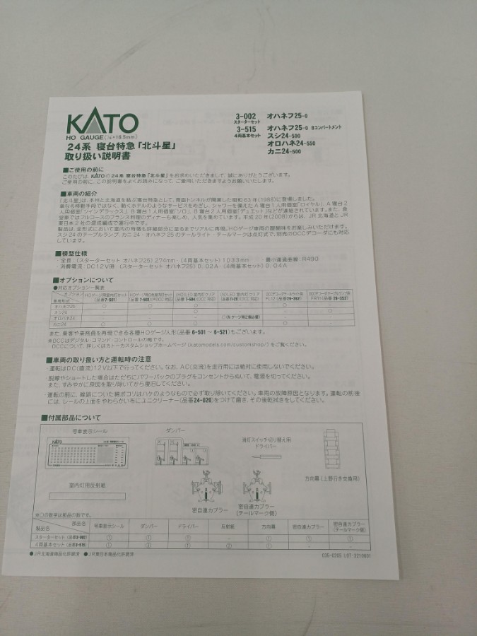 HOゲージ 24系寝台特急北斗星4両基本セット3-515 KATO 客車 KATO 24系寝台特急北斗星4両基本セット3-515 HOゲージ