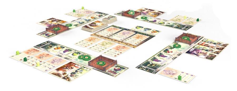 [セット内容]市場ボード 1枚得点マーカー 4枚プレイヤーボード 4枚ツリーマーカー 12個収納箱 4つコイン 35枚果物カード 75枚ギルドカード 73枚
