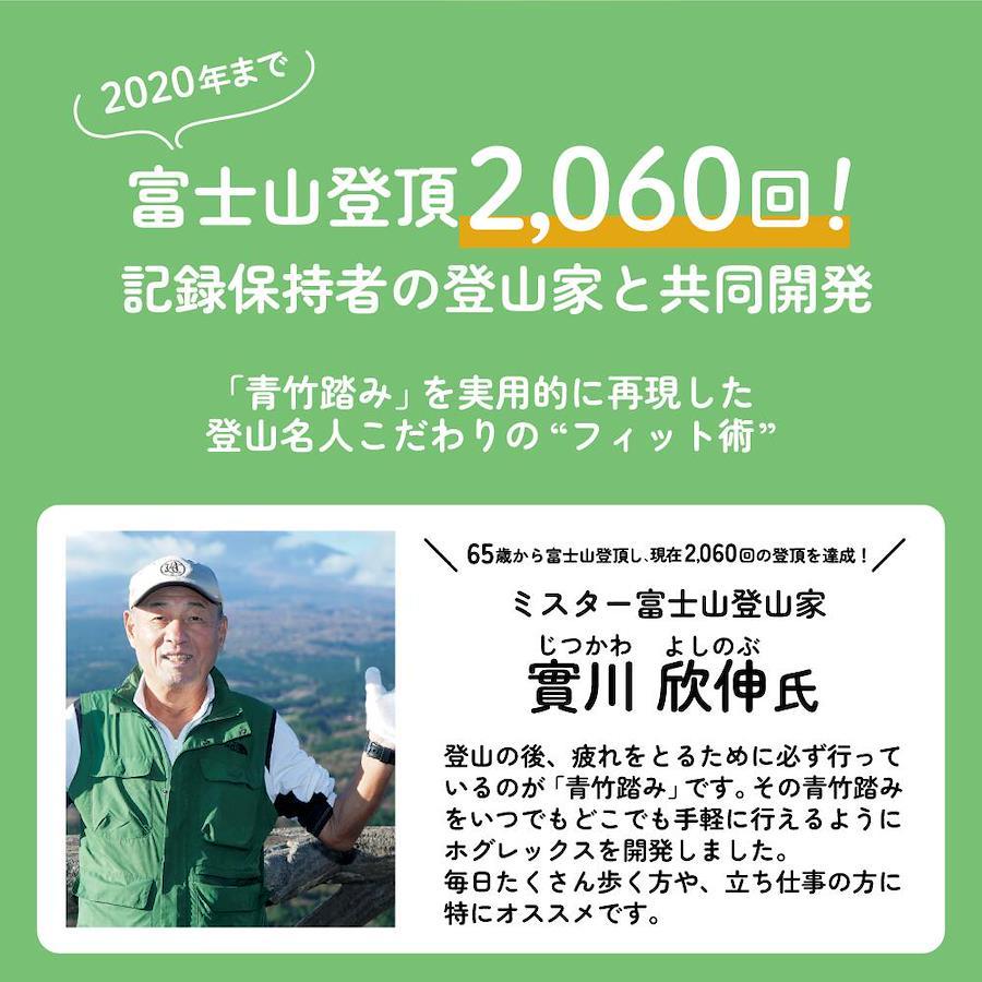 【商品情報】富士山登頂2060回!記録保持者の登山家と共同開発ミスター富士山登山家 實川欣伸(じつかわよしのぶ)氏富士登山後も疲れを残さない、最強の青竹踏みを作りました。