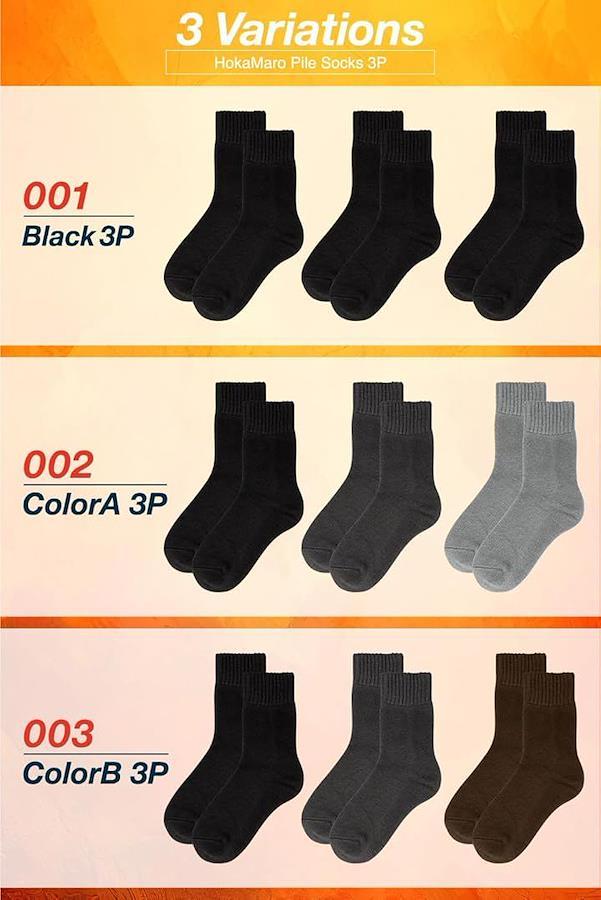 黒色、チャコール、グレー、茶色の4色の中から、各3足セットが選べます。